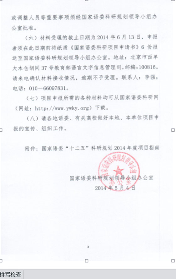 关于组织申报2014年度国家语委科研项目的通知