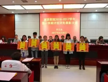 为总结表彰了先进,树立典型,推进文明和谐校园建设。4月27日,湘西职院2016-2017学年第一学期学生先进集体及先进个人表彰大会在学院D区会议室隆重举行。学生处处长杨云,关工委负责人李成凤,学生处相关负责人、各系部学工人员、辅导员与200余名获奖学生、获奖集体代表出席了大会。