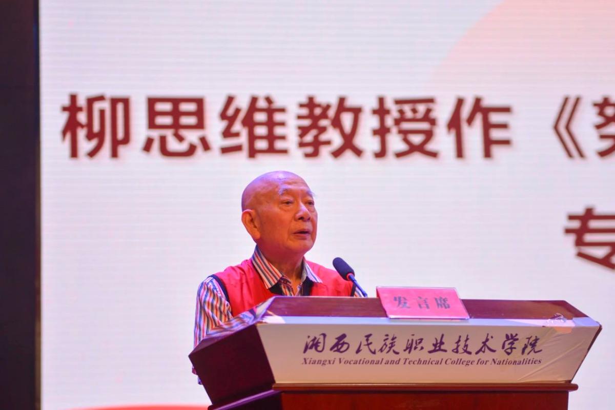 柳思维以《努力让自己足够强大》为题,为在座的师生进行了专题讲座。柳思维原为州商校教师,中南大学博士生导师,一级教授,获奖无数并身负多个国家、省级重要荣誉头衔,名声享誉国内外。他结合自己数十载的人生经历、教育历程,把毕生的所学、所创、所感为在座师生进行了分享,对在座的师生进行了谆谆教诲,对现场的青年学子们提出了殷切希望。