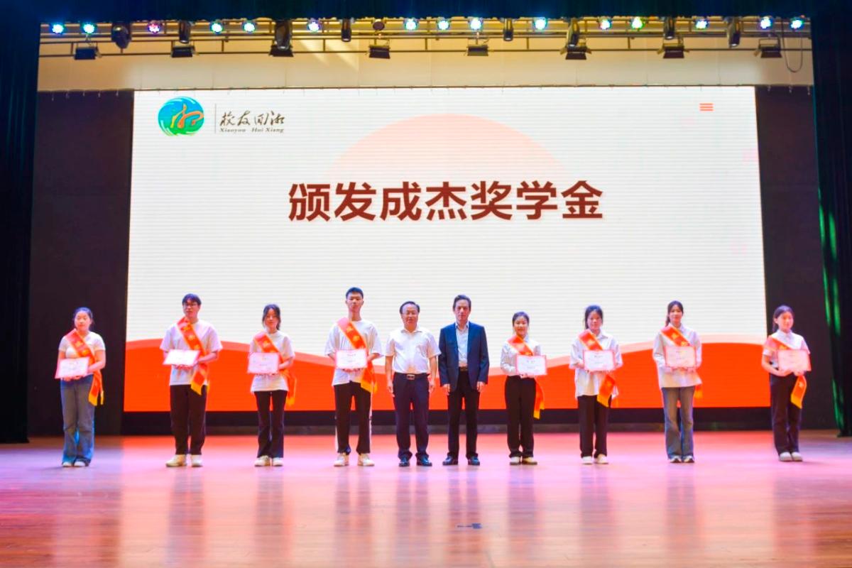 活动中,谢绍猛代表学校为柳思维、曹成杰两位校友颁发了客座教授聘书,并与曹成杰一起为黄雨婷等8名同学颁发了首届“成杰奖学金”。该奖学金是今年5月6日由曹成杰为学校捐赠200万元设立,专门用于对我校优秀学生的助学奖励。黄雨婷作为受助学生代表进行了发言。