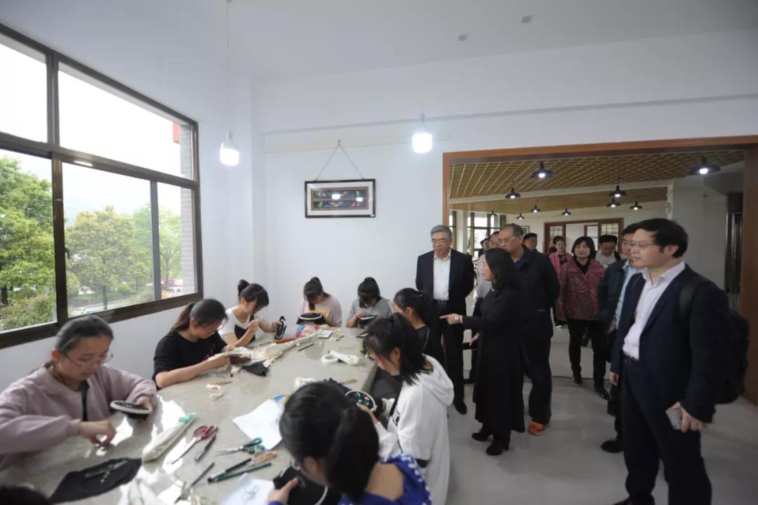 调研组一行实地考察了湘西职院师生手工艺品陈列室、民族工艺传习所、非遗大师工作室、数控加工实训室、汽车维修实训车间等教学实训场地,并与师生们进行交谈,仔细询问他们在校工作学习的基本情况。调研过程中,谭吉慧向调研组一行细致地汇报了学院职教扶贫、农技特岗生培养、贫困生资助等工作开展情况。