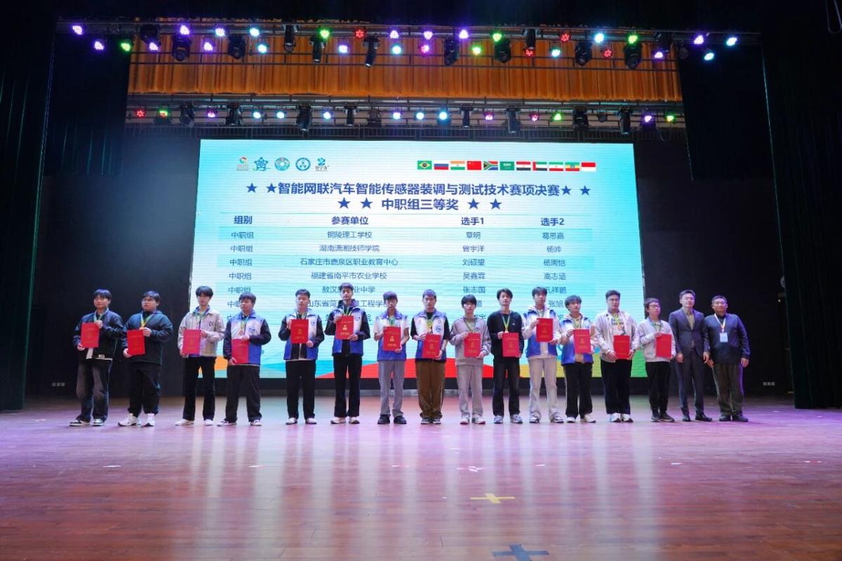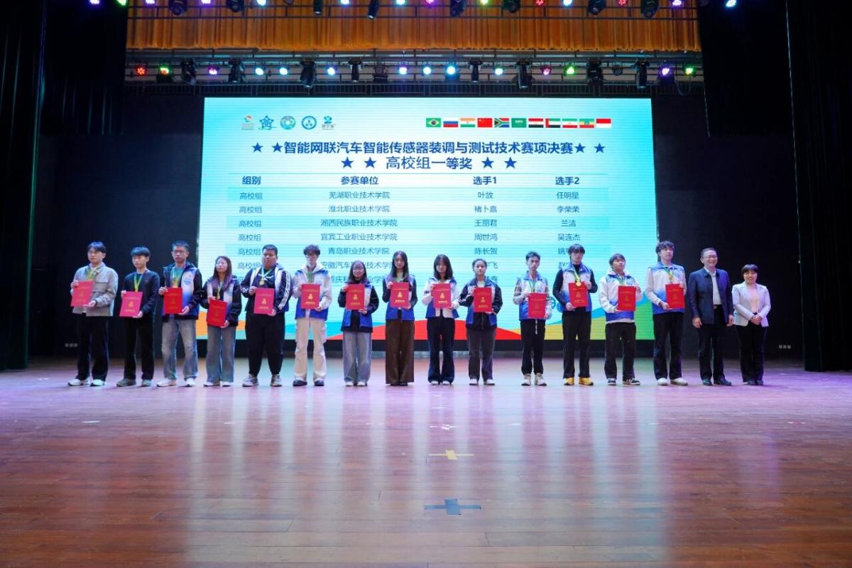 11月29日下午,为期三天的2025一带一路暨金砖国家技能发展与技术创新大赛——智能网联汽车智能传感器装调与测试技术赛项决赛,在湘西民族职业技术学院文体会展中心展示馆圆满落下帷幕。湘西州教育和体育局党组成员、副局长刘修洪,金砖国家技能发展与技术创新大赛组委会执委会国内竞赛办公室副处长王丹丹,北京智学客教育科技有限公司营销总监孙岩,湘西职院党委副书记、副校长陈杨晖,湘西职院党委委员、副校长白刚、吴娟、黄毅等领导出席闭幕式。