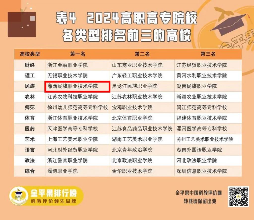 湘西职院位列“金平果”排行榜民族类型高职院校全国第一位
