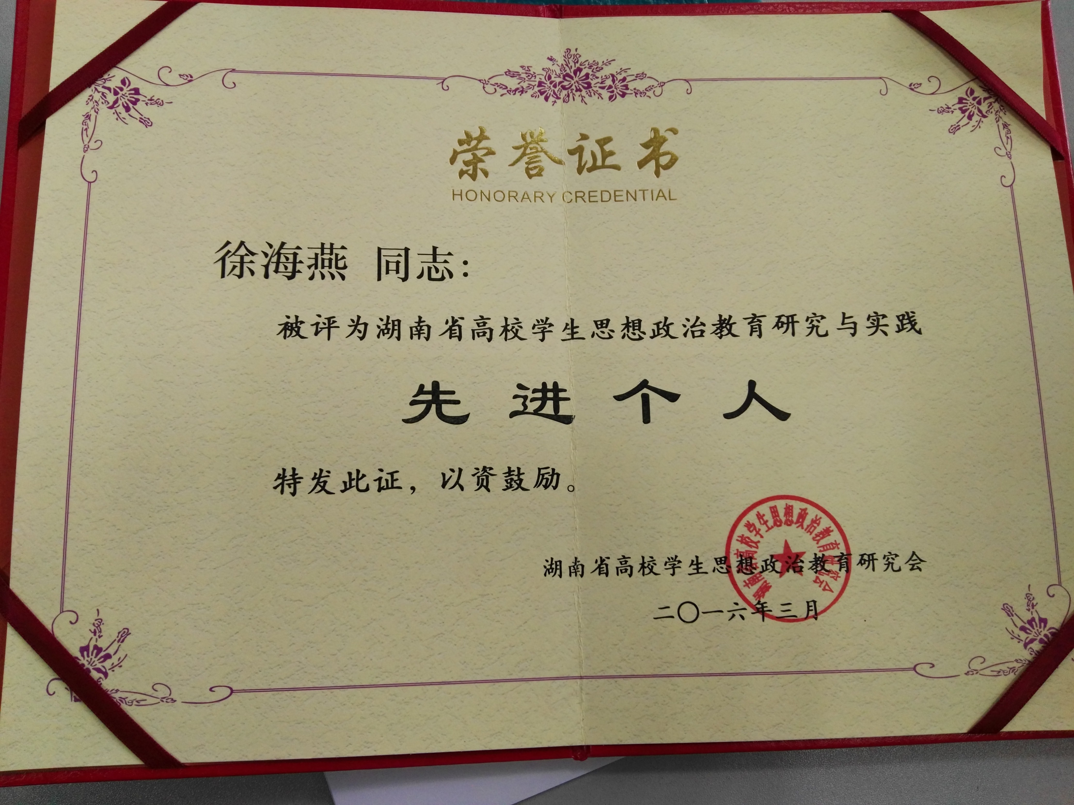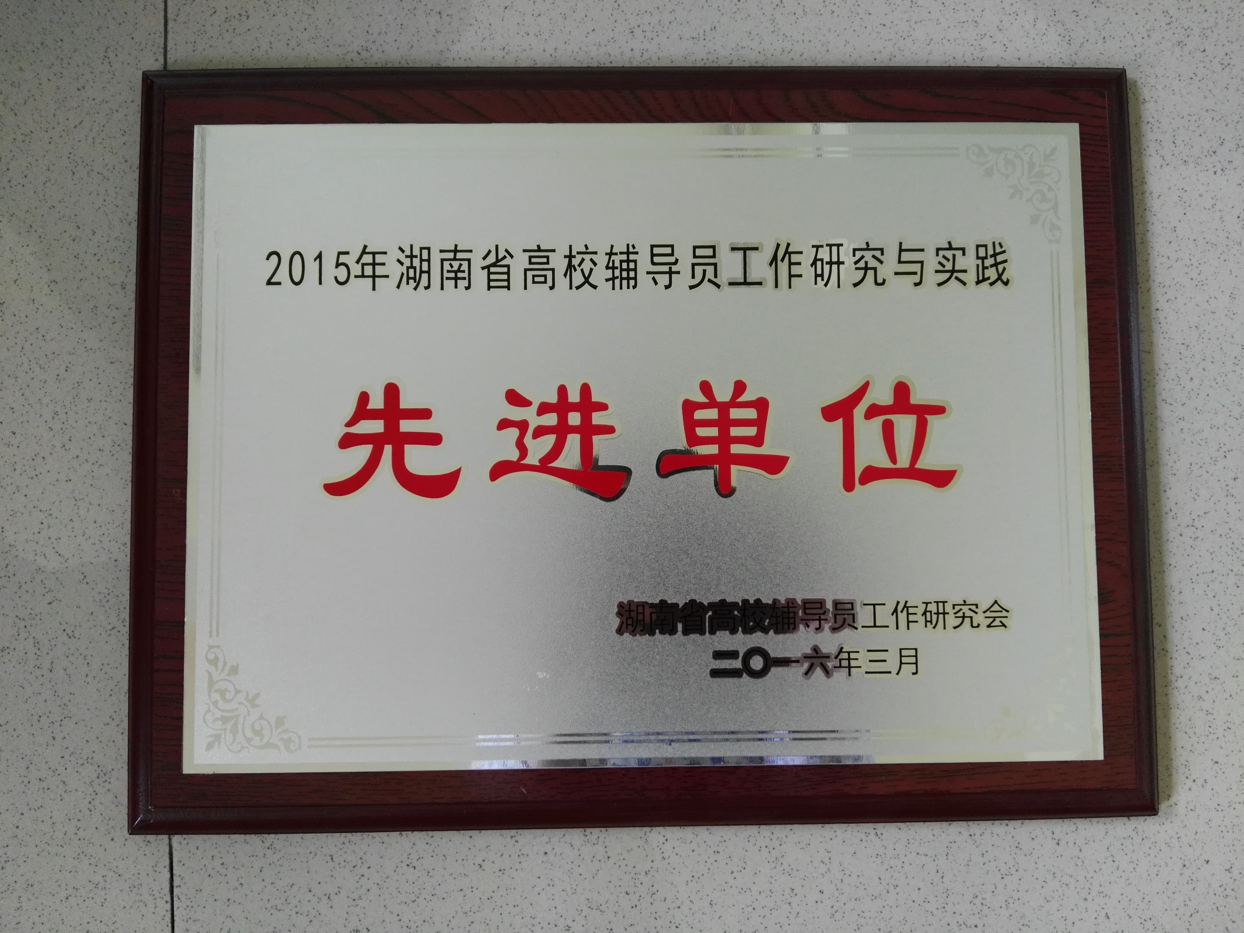 近日,湖南省学生思想政治教育研究会在张家界隆重召开,会上20所高校和66名先进个人受到表彰。我院在本次大会上斩获多项殊荣,学院被评为“2015年度高校辅导员工作研究与实践先进单位”,曾杰老师获评“辅导员工作研究与实践先进个人”,徐海燕老师获评“学生思想政治研究与实践先进个人”。近年来,学院领导及相关部门高度重视学生思想政治工作,不断加强辅导员队伍建设,持续推进辅导员工作研究与实践,学生思想政治工作迈上了一个新的台阶。