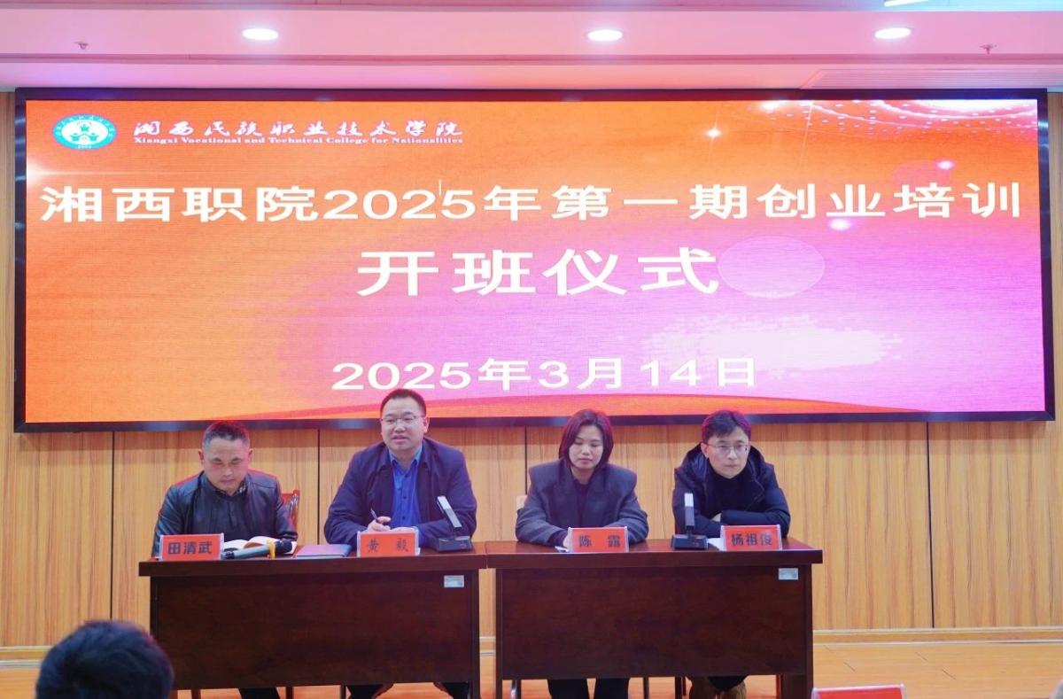 3月14日,我校举行2025年第一期创业培训开班仪式。我校招生就业处处长黄毅,培训教师、企业专家陈露,吉首农商行信贷部副总经理杨祖俊出席仪式,招生就业处副处长田清武主持仪式。