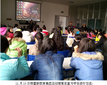 深圳特蕾新教育集团是与我院应用外语系幼师专业进行校企联合办学的集团企业, 11月9日至11日,该集团总经理黄至富,教师黄芳芳、龙维维在学院图书馆1楼就业指导中心对我院应用外语系幼师专业学生进行了为期3天的教学检查与交流活动。应用外语系负责人彭明英、副主任王树龙以及幼师教研室老师杨舟全程陪同。