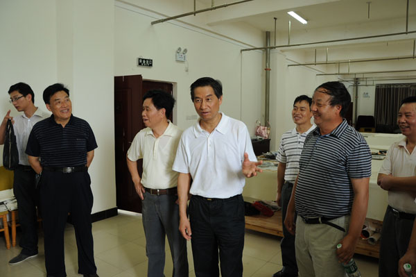 蔡力峰一行步入学院,就在吴正有书记等学院领导的陪同下观看了学院关工委工作展板,初步了解学院关工委工作,随即一路参观了学院教学楼、实训楼、图书馆、书画院。在书画院,蔡力峰兴致勃勃地欣赏了学院教职工的书画作品,特别称赞了几位退休老同志的书法作品。参观结束后,在图书馆七楼会议室召开了座谈会,龙爱东主持座谈会。学院关工委副主任胡和生就构建长效工作机制,奠定参与管理的基础;以“青蓝工程”为载体,积极参与教学管理;以主题教育活动为抓手,参与学生管理;以特邀党建组织员为骨干,积极参与党建工程;以创建和谐校园为目标,积极参与关爱育人工程等五个方面介绍了学院关工委工作。