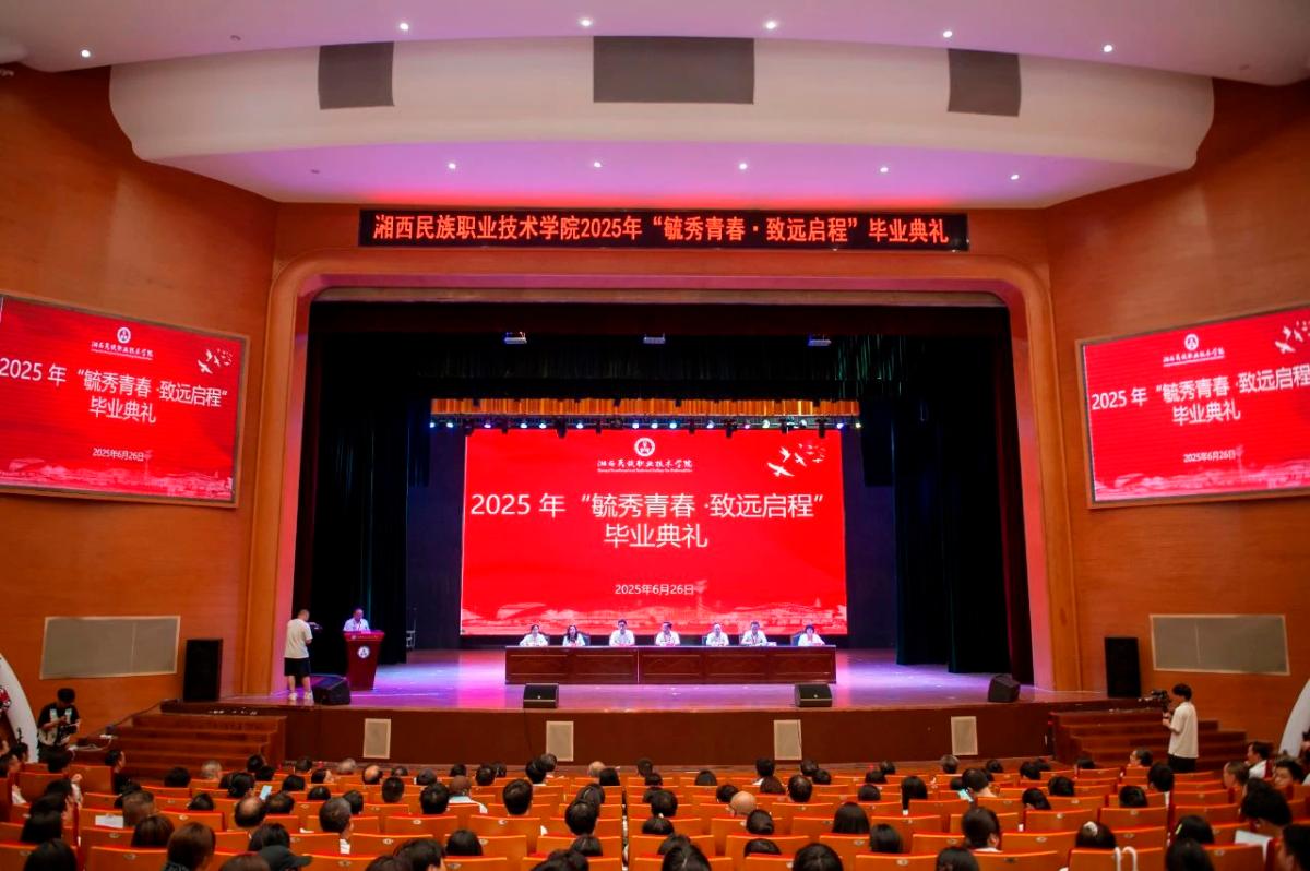 6月26日下午,湘西民族职业技术学院“毓秀青春·致远启程”2025届毕业典礼在文体中心展示馆举行,为全校4596名毕业生送上祝福与激励。学校党委书记谢绍猛、校长翁波出席毕业典礼。学校在家党委班子成员、教师代表与1100余名毕业生代表共同见证了这一重要时刻。