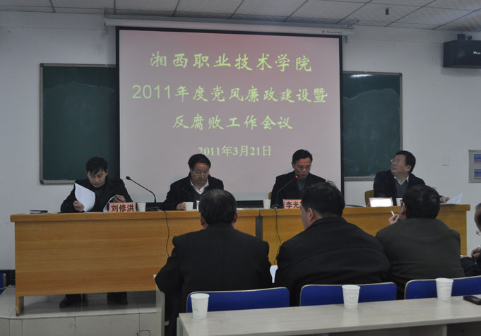 为传达贯彻十七届中央纪委六次全会、2011年全省教育系统党风廉政建设和反腐败工作会议以及九届州纪委七次全会暨全州反腐败工作会议精神,回顾总结2010年学院党风廉政建设工作,研究部署2011年党风廉政建设工作任务,2011年3月21日下午,我院在新校区党员活动室召开2011年党风廉政建设暨反腐败工作会议。学院领导、全院正科级以上干部参加会议。会议由学院院长李光寒主持。