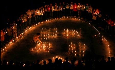 点燃蜡烛 为玉树地震遇难同胞祈福