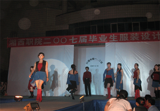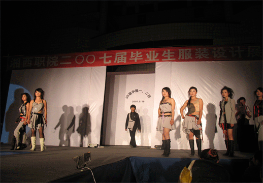 2007516日,湘西民族职业技术学院首届服装专业毕业生举行了一次服装设计汇报展演活动此次展演共分16个系列有唐装、童装、休闲装、前卫服装、生活礼服、民族服装及晚礼服,款式新颖,都是同学们精心构想,用心设计,自己动手制作的作品,充分展示了学生们的动手能力及教学成果。