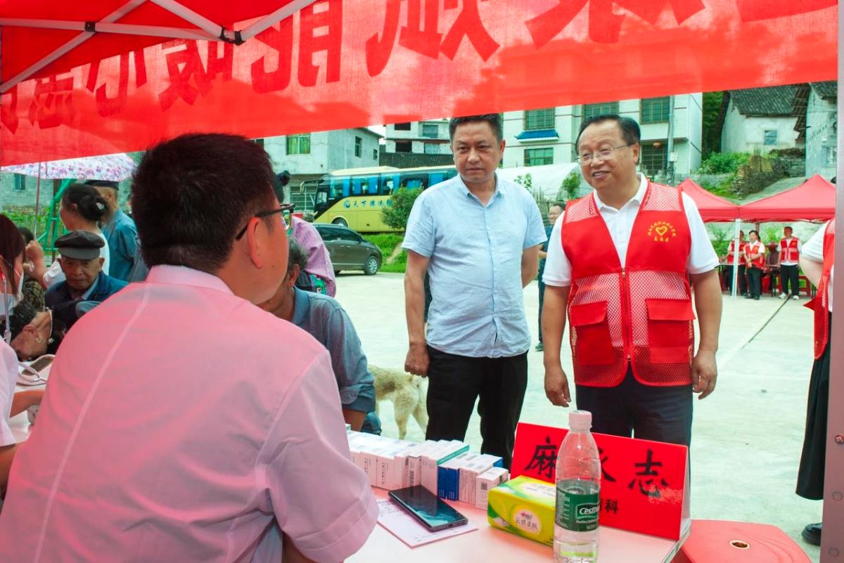 活动当天上午,苟拐村内义诊临时站点内,拄着拐杖的老人、怀抱幼儿的妇女,放下锄头匆匆赶来的壮年们,在这里排成了长龙。面对络绎不绝的村民,专家们耐心俯身问诊,仔细倾听每位村民的病史,用通俗语言解释病情。