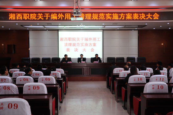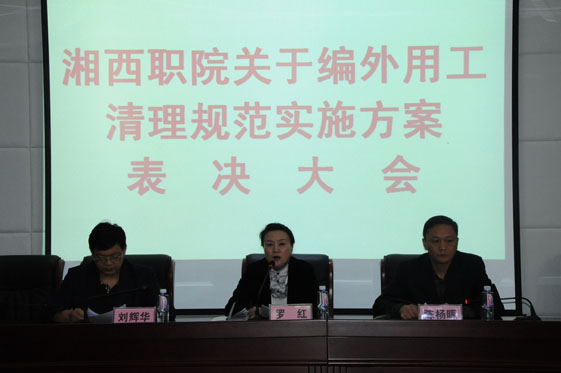 会中,组织人事处处长刘辉华在会上宣读了《湘西职院编外用工清理规范工作实施方案》。与会代表认真审议并以举手表决的方式全票通过了《湘西职院编外用工清理规范工作实施方案》。