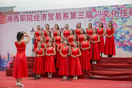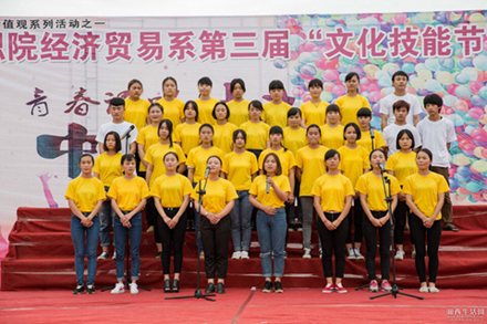 日前,经济贸易系在学院中心广场举行了以“青春唱诵中国梦”为主题的第三届文化技能节闭幕式。