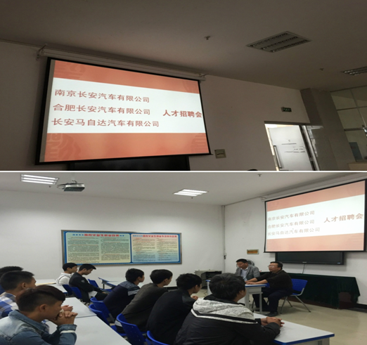 10月10日上午,学院图书馆一楼就业指导中心人头攒动、座无虚席,南京长安汽车有限公司、合肥长安汽车有限公司、长安马自达汽车有限公司联合举办的人才招聘会在这里召开。招聘会由交通工程系副主任杨一兵主持,交通工程系11-5高职汽修专业全体学生参加招聘会。