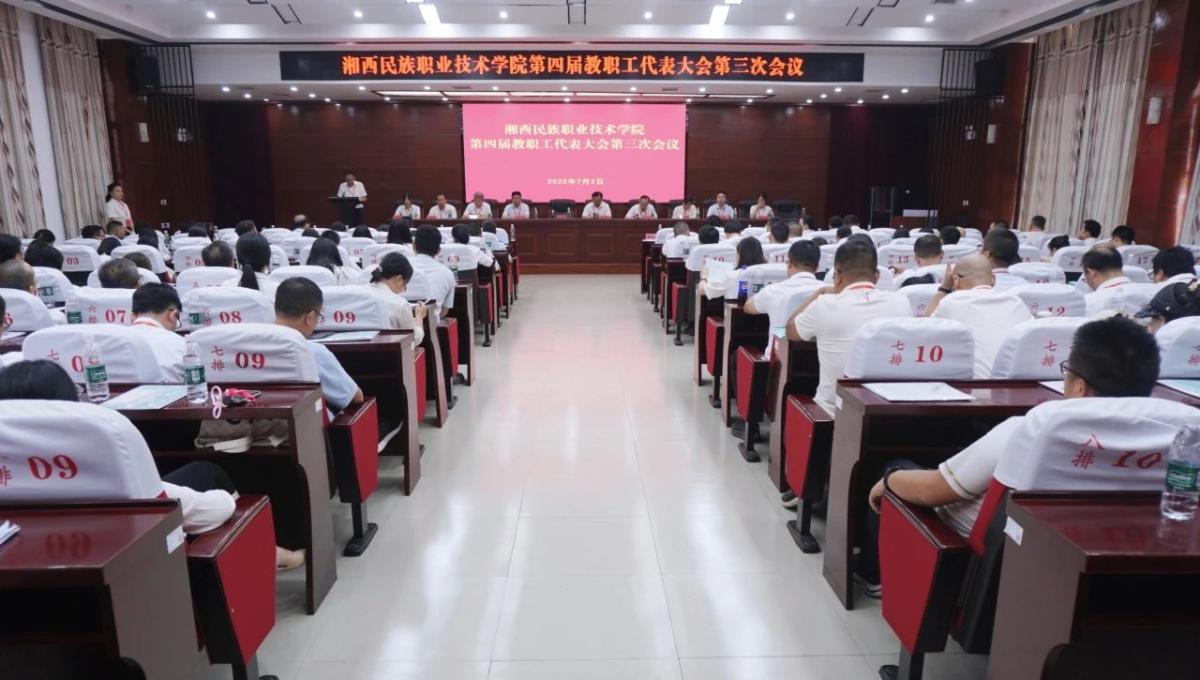 闭幕式上,全体代表以表决方式一致通过了《湘西民族职业技术学院"三定"工作实施方案》(草案)和《湘西民族职业技术学院专业技术职称评审办法》(草案)。陈杨晖对会议成果给予充分肯定,并向全体代表的积极参与和认真履职表示衷心感谢。