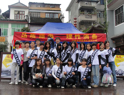 9月25日,我院旅游管理系与州旅游局联合开展的“品质旅游,伴你远行”旅游公益宣传活动,在凤凰古城、吉首火车站拉开序幕。此次活动是根据国家旅游局“2010全国旅游服务质量提升年”活动的总体部署,在湖南省旅游局的具体指导下开展的以“品质旅游、理性消费、文明旅游”为主题的旅游公益宣传活动。