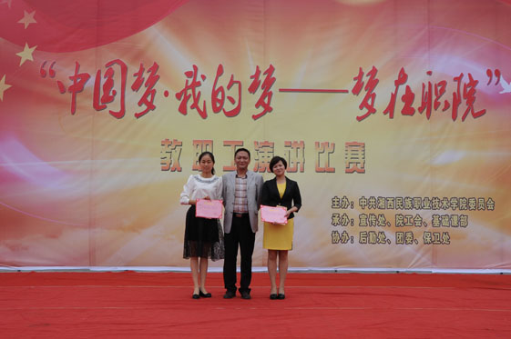 5月27日,学院中国梦·我的梦——梦在职院”(教职工组)演讲比赛在校园文化广场举行。学院副院长刘辉、院工会主席陈杨晖现场观看比赛并为获奖选手颁奖,学院纪委书记刘修洪为本次比赛作致辞。活动由院宣传处、院工会、基础课部等部门承办。
