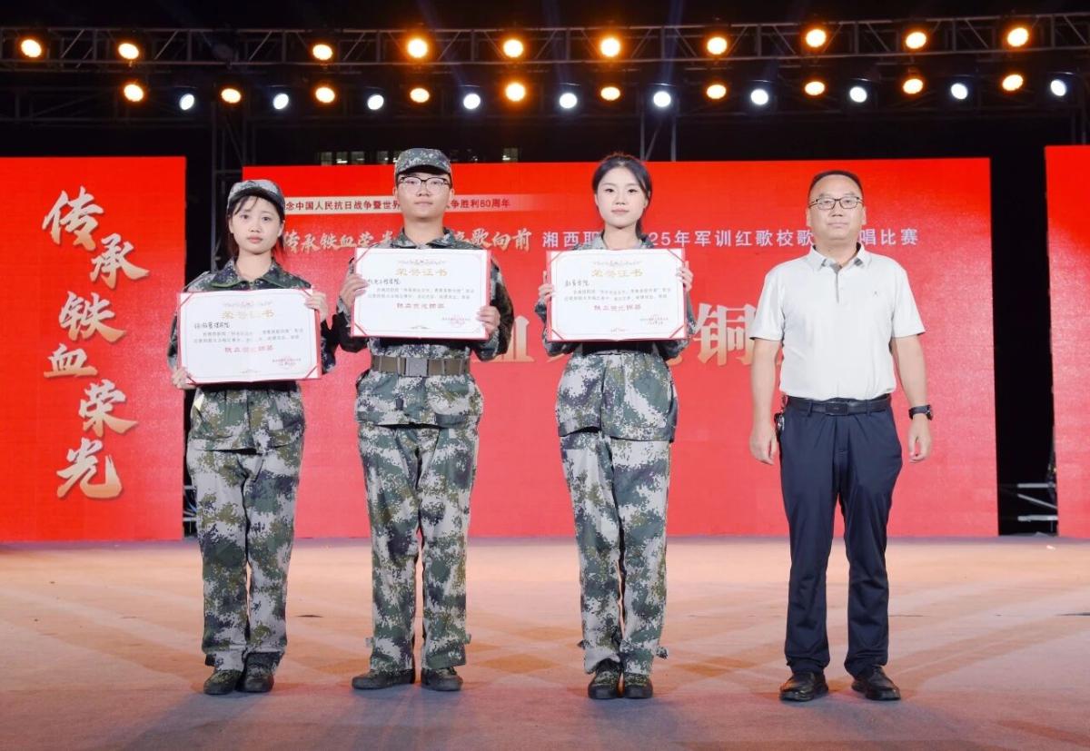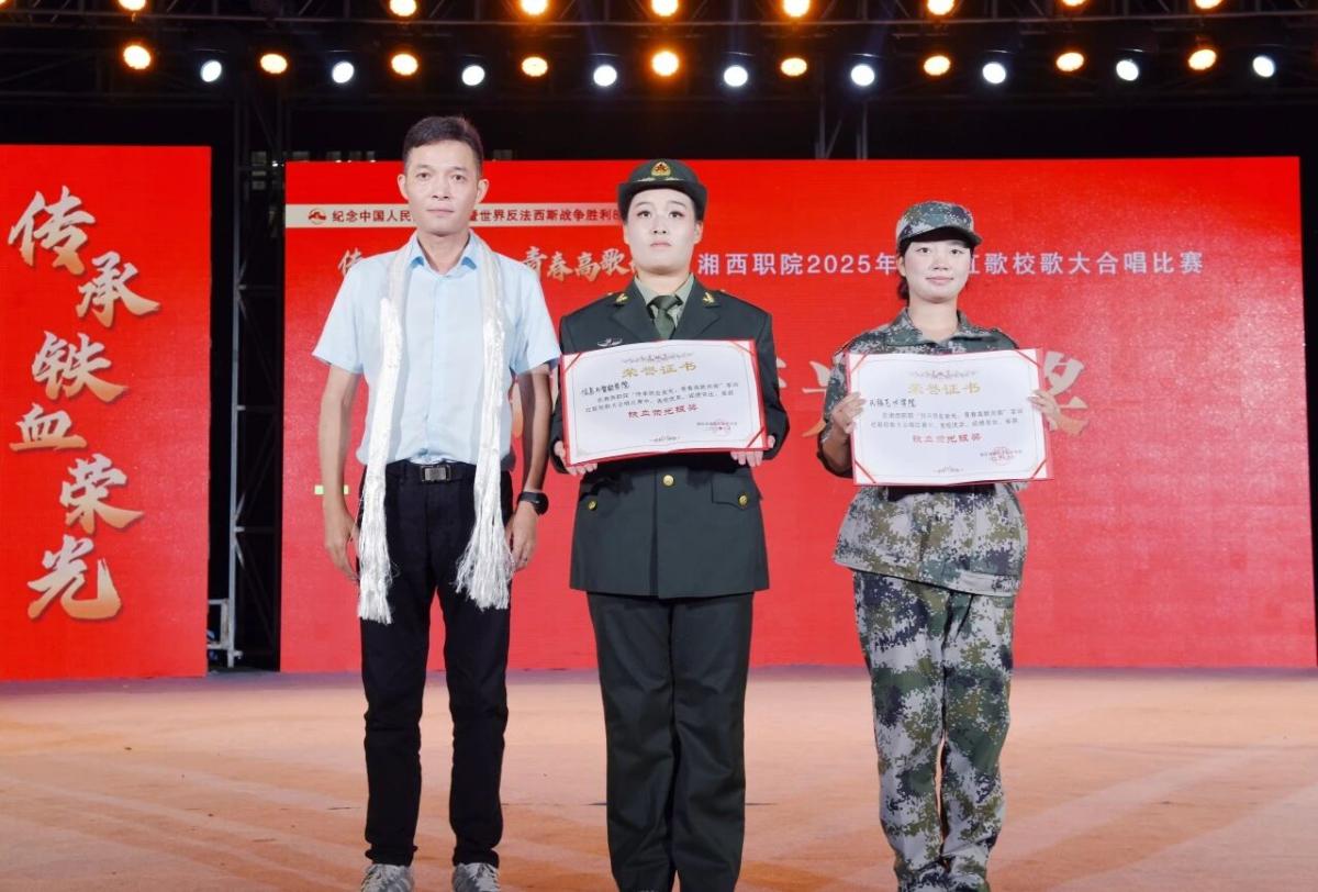 为纪念中国人民抗日战争暨世界反法西斯战争胜利80周年,深化爱国主义教育,传承红色基因,9月27日晚,我校举行了“传承铁血荣光,青春高歌向前”军训红歌校歌大合唱比赛。学校党委书记谢绍猛等校领导出席活动,2025级全体军训新生参加本次活动。