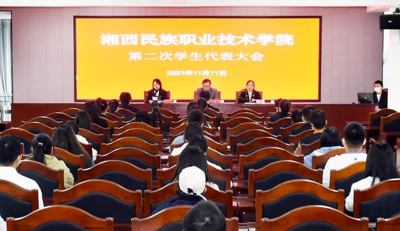 11月11日,湘西民族职业技术学院第二次学生代表大会在学院连廊会议室顺利召开,学院党委委员、副院长姚斌,学院团委书记王丹子,团委副书记李虹昆出席会议,117名学生代表参加了此次会议,王丹子主持会议。