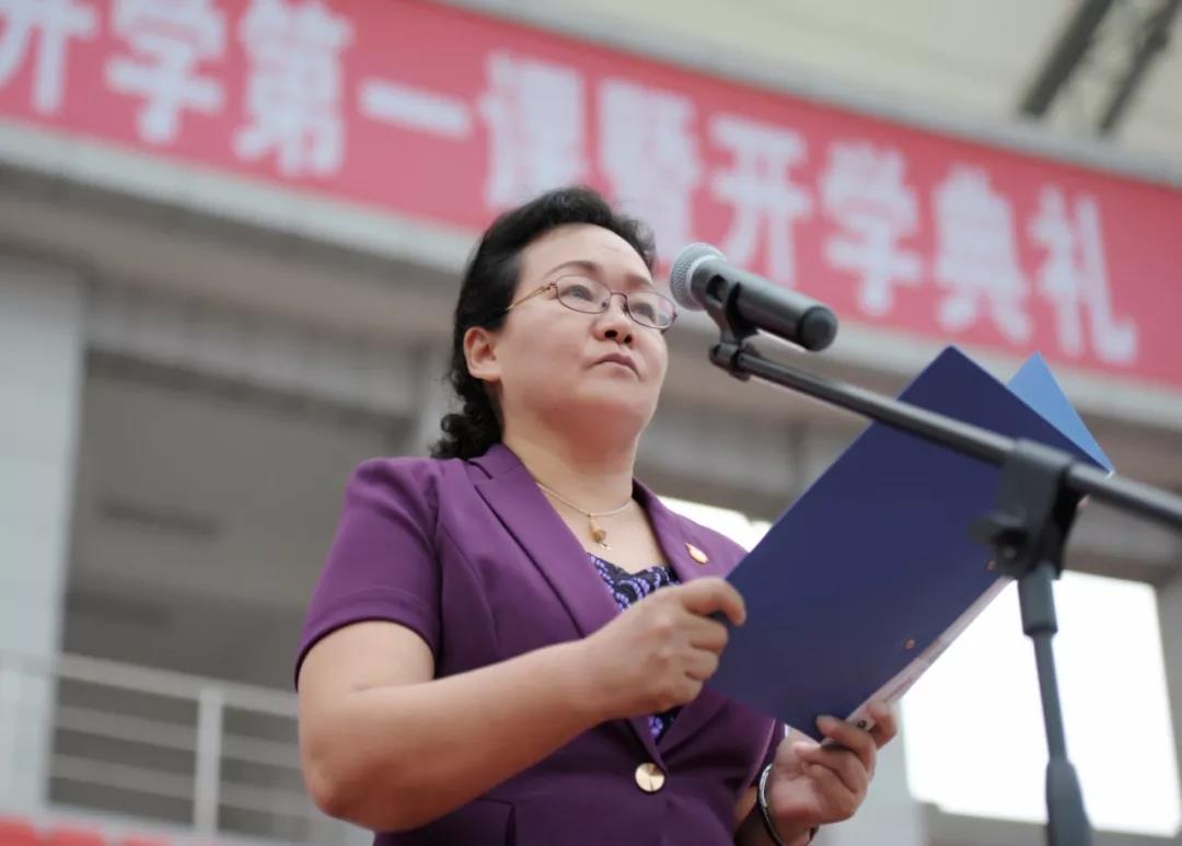 谭吉慧对全体学生的到来表示欢迎,对全体教职工致以节日的问候,并用“四句话、八个词”寄语学生们健康全面成长。