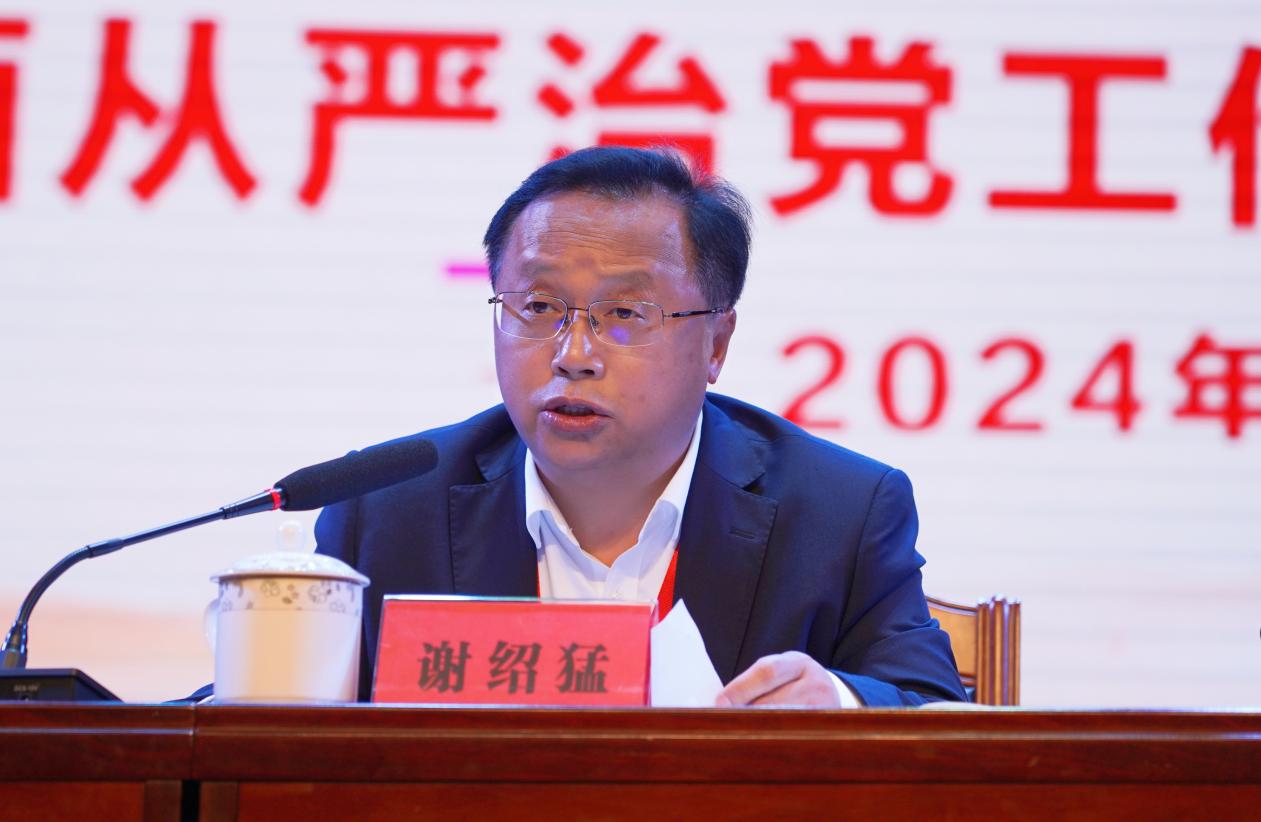 谢绍猛在讲话中要求,要始终以深学深信的精神,准确把握习近平总书记关于党的自我革命重要思想精髓要义,在把握自我革命重大意义上提高政治站位,在把握自我革命实践要求上找到方法路径,在把握自我革命战略部署上明确任务举措。要始终以从严从实的基调,纵深推进全面从严治党在现代职业教育中彰显引领保障作用,将政治建设作为把准办学方向的首要任务,将反腐倡廉作为维护清廉生态的有力举措,将四风纠治作为师德师风建设的重要内容,将专项整治作为解决突出问题的关键一招。要始终以坚定坚决的态度,不断增强落实党的自我革命的政治自觉思想自觉和行动自觉,坚决落实主体责任,不断增强监管能力,着力提升廉洁意识。全面从严治党工作任重道远、使命光荣,我们要不断深入推进全面从严治党,将党的政治优势、组织优势转化为办学和治校优势,为学院实现高质量发展保驾护航,为实施教育强省、教育强州战略作出积极贡献。
