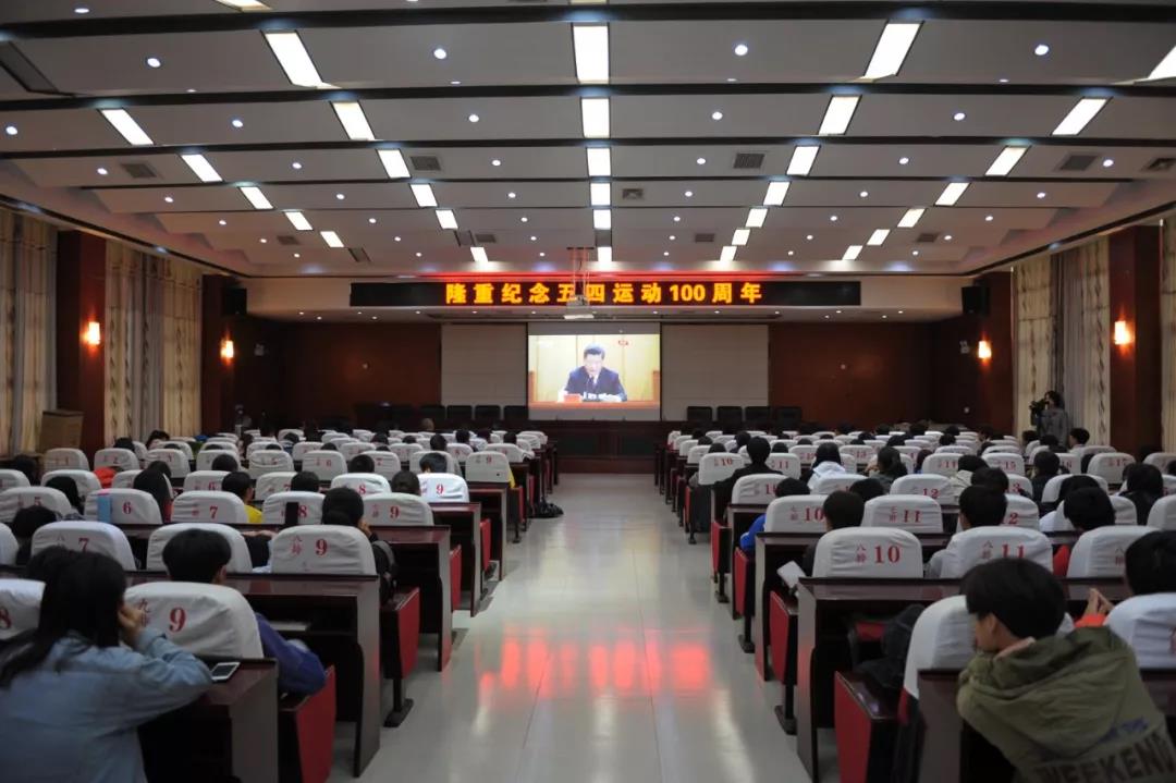 为弘扬和传承五四精神,深刻学习领会纪念五四运动100周年大会精神,4月30日,湘西民族职业技术学院全体在家党委委员,院团委、各系团总支相关负责人、团干及团员代表在学院D区报告厅集中收看纪念五四运动100周年大会直播。习近平总书记出席大会并发表重要讲话,深切缅怀了五四先驱崇高的爱国情怀和革命精神,高度评价了五四运动的历史意义,明确提出了新时代发扬五四精神的重要要求,深切寄语当代青年。习近平总书记的重要讲话精神在湘西民族职业技术学院广大师生中引发强烈反响,大家表示,五四运动是我国近现代史上具有里程碑意义的重大事件,五四精神是五四运动创造的宝贵精神财富,作为新时代中国青年和青年工作者,将在以习近平同志为核心的党中央集中统一领导下,积极拥抱新时代、奋进新时代,让青春在为祖国、为人民、为民族、为人类的奉献中焕发出更加绚丽的光彩!
