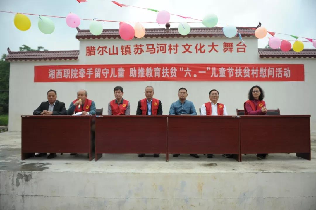 为使扶贫村留守儿童感到党和政府的关怀、后盾单位的关爱和温暖,启迪智慧、陶冶情操、增进团结、增强自信、获取知识、培养能力,529,湘西民族职业技术学院牵手留守儿助推教育扶贫------“六一”儿童节慰问活动在学院扶贫村凤凰县腊尔山镇苏马河村举行。学院党委副书记、副院长宋清华,党委委员、副院长钟明,党委委员、宣传处处长曾翠林,院关工委执行主任曹义文等领导出席本次活动。学院驻苏马河村工作队队长李文艺主持本次活动启动仪式。