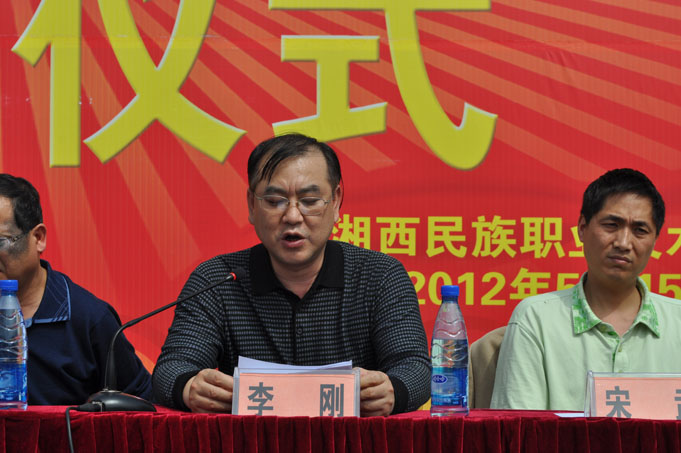 李刚主任代表州教育局在仪式上作了讲话,他希望广大学生牢记自己责任,怀揣感恩之心,努力学习,积极进取,为社会做出贡献。并表示,州教育局学生资助中心将配合上级部门、社会捐资助学者,为湘西职院家庭困难及品学兼优的学生服好务。