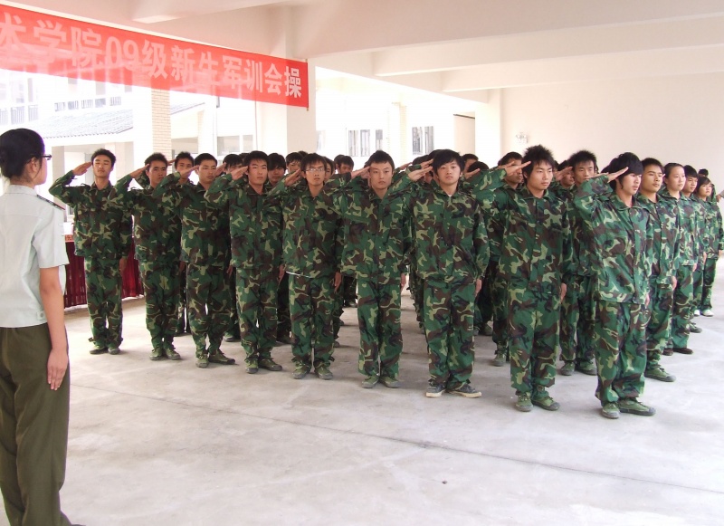 遵照省教育厅、省军区指示精神,在学生处和各系部的精心组织下,我院2009级新生已圆满完成了军训任务。